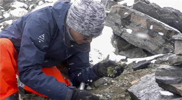 中國科學(xué)家在珠穆朗瑪峰6200米地帶采集植物種子(資料照片)。 新華社發(fā)(中國科學(xué)院昆明植物研究所供圖)
