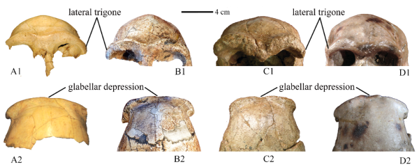 據(jù)介紹,華龍洞6號(hào)頭骨具有一些東亞更新世中期直立人面部特征,但這些特征的表現(xiàn)程度較周口店等直立人明顯更弱。一些常見(jiàn)于更新世中期直立人及古老型人類的面部特征,如鼻骨寬闊、低矮的上面部、明顯的突頜等在華龍洞6號(hào)表現(xiàn)微弱,甚至缺失。