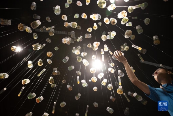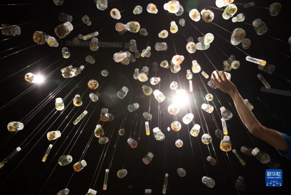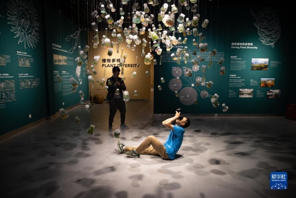 10月10日,在舉行發(fā)布會的中科院生物多樣性成果展現(xiàn)場,觀眾參觀由種子發(fā)育而來的多樣性植物樣品。