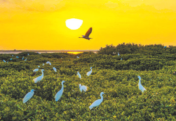 紅樹(shù)林是典型的儲(chǔ)碳能手。這是廣西北海市合浦縣廉州灣的紅樹(shù)林。林啟波攝