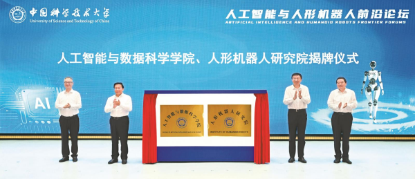 6月18日上午,中國科學(xué)技術(shù)大學(xué)人工智能與人形機(jī)器人前沿論壇在學(xué)校高新園區(qū)舉行。安徽省委書記韓俊、省長王清憲和中國科大黨委書記舒歌群、校長包信和共同為中國科大人工智能與數(shù)據(jù)科學(xué)學(xué)院、人形機(jī)器人研究院揭牌。安徽日報(bào)記者 楊竹 攝