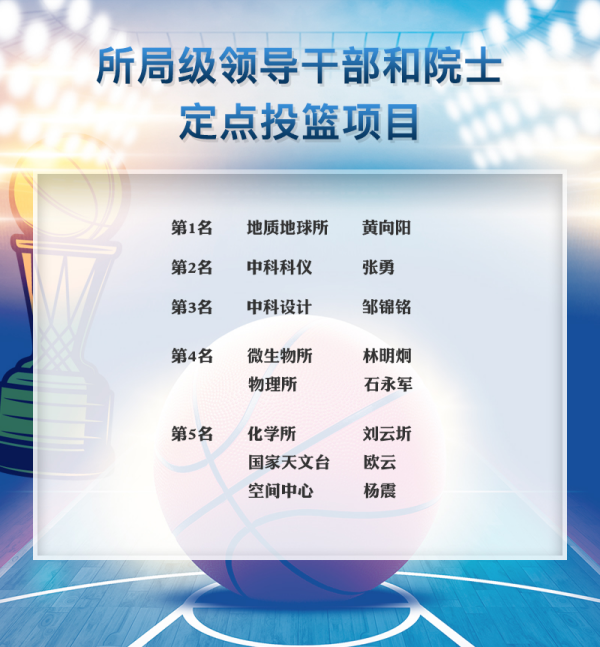 本次比賽由中國科學(xué)院工會、中國科學(xué)院體協(xié)主辦,力學(xué)研究所、化學(xué)研究所、國家納米科學(xué)中心、自動化研究所、電工研究所、國家空間科學(xué)中心、信息工程研究所等7家單位協(xié)辦。來自京區(qū)41家單位的近600名職工運動員、教練員參加了男子“五人制”籃球比賽項目,70余名所局級領(lǐng)導(dǎo)和3位院士參加了定點投籃項目,參賽單位和人數(shù)均創(chuàng)歷史新高。