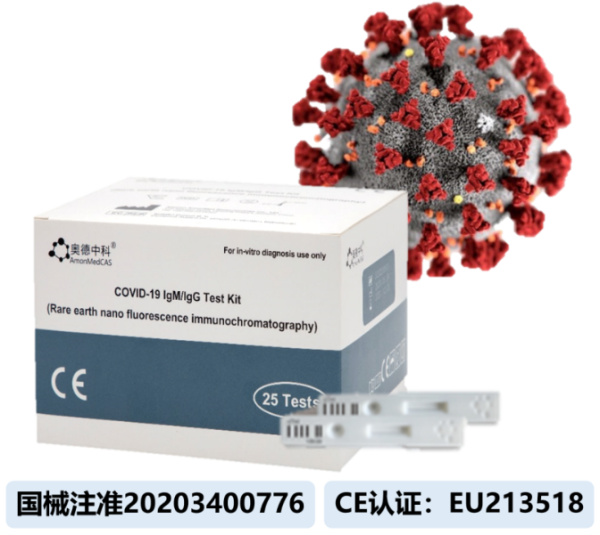 稀土納米探針新型冠狀病毒IgM/IgG抗體快速檢測(cè)試劑盒及國家醫(yī)療器械注冊(cè)證號(hào)、歐盟CE認(rèn)證編號(hào)