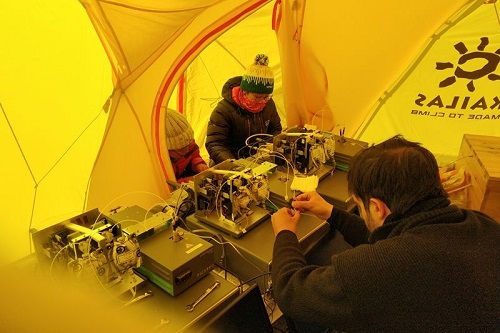 科研人員在珠峰大本營調(diào)試水汽穩(wěn)定同位素觀測儀器