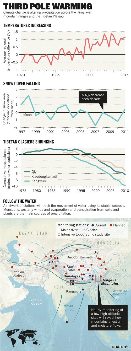 1月3日,中國科學(xué)院院士、中科院青藏高原研究所研究員、“第二次青藏高原綜合科學(xué)考察研究”(STEP)首席科學(xué)家、“泛第三極環(huán)境變化與綠色絲綢之路建設(shè)”戰(zhàn)略性先導(dǎo)科技專項(簡稱“絲路環(huán)境”專項)首席科學(xué)家、“第三極環(huán)境”(TPE)國際計劃主席姚檀棟團(tuán)隊在《自然》雜志發(fā)表題為“冰崩威脅亞洲水安全”的科學(xué)評論文章,旨在闡明第三極地區(qū)正在經(jīng)歷的加速水循環(huán)過程及其影響和建立系統(tǒng)的氣象-水體穩(wěn)定同位素觀測網(wǎng)的重要性,呼吁全球自然科學(xué)家和社會科學(xué)家投身到第三極水循環(huán)研究中,構(gòu)建聚焦水問題的觀測和地球系統(tǒng)模型新體系,服務(wù)于亞洲水塔和絲路地區(qū)的水安全戰(zhàn)略和水資源管理。
