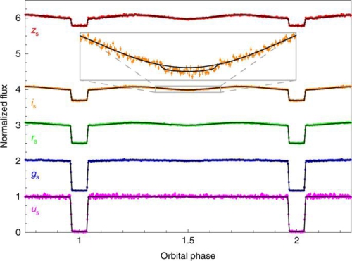 近日,由中國(guó)科學(xué)院國(guó)家天文臺(tái)興隆觀測(cè)基地博士任娟娟參與的國(guó)際研究團(tuán)隊(duì),發(fā)現(xiàn)了首顆存在掩食現(xiàn)象的白矮星+冷亞矮星雙星(圖1),并借助該雙星首次同時(shí)準(zhǔn)確測(cè)量出了冷亞矮星的質(zhì)量和半徑。該研究工作由來(lái)自西班牙加泰羅尼亞理工大學(xué)(UPC)、加泰羅尼亞太空研究所(IEEC)、英國(guó)謝菲爾德大學(xué)(University of Sheffield)、中科院國(guó)家天文臺(tái)、英國(guó)華威大學(xué)(University of Warwick)等單位的科研人員共同合作完成。相關(guān)成果于4月8日在線發(fā)表在國(guó)際科學(xué)期刊《自然-天文》(Nature Astronomy)上。