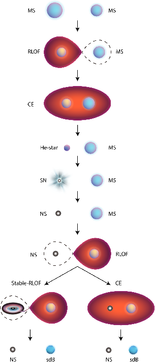 熱亞矮星與中子星雙星形成的示意圖