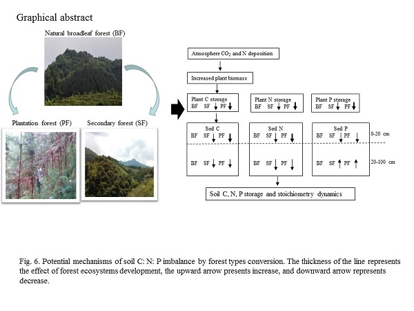 中國科學院華南植物園生態(tài)中心羅先真在研究員溫達志的指導下,依托中科院戰(zhàn)略性先導科技專項-應對氣候變化的碳收支論證及相關(guān)問題之“中國森林生態(tài)系統(tǒng)固碳現(xiàn)狀、速率、機制與潛力研究”課題和廣州市林業(yè)和園林局“廣州市森林碳匯計量與監(jiān)測研究”項目所建立的樣地,開展地帶性原生常綠闊葉林、次生林和人工林生態(tài)系統(tǒng)中植被和土壤碳氮磷儲量、分配及碳周轉(zhuǎn)關(guān)鍵酶的研究。研究發(fā)現(xiàn),原生林向次生林、人工林轉(zhuǎn)變,導致植物和土壤碳、氮、磷庫下降;原生林表層土壤磷升高而下層土下降,意味著植被巨大生物量磷需求和歸還驅(qū)動了土壤磷的再分配。植被生物量是驅(qū)動土壤碳、氮、磷輸入與保存、從而改變生態(tài)系統(tǒng)碳氮磷化學計量比的關(guān)鍵。亞熱帶地區(qū)森林生長受氮、磷共限制及其共同調(diào)控。植被生物量與土壤碳氮磷庫及其化學計量比之間經(jīng)驗關(guān)系模型,是判別林地轉(zhuǎn)化影響的有效工具,能夠為實施原生林保護和次生林恢復行動計劃提供強有力的支持。與原生林相比,次生林和人工林中土壤活性碳組分含量減少顯著降低水解酶活性,土壤惰性碳組分含量的下降則顯著降低了氧化酶活性,從而不利于土壤有機碳積累。