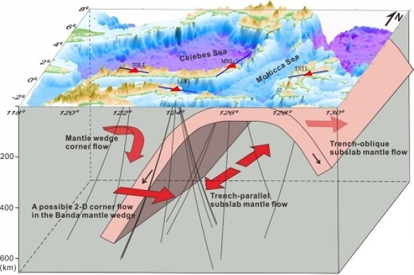 雙向俯沖的Molucca Sea板塊之上地幔楔、板下地幔以及板片邊緣地幔流動模型