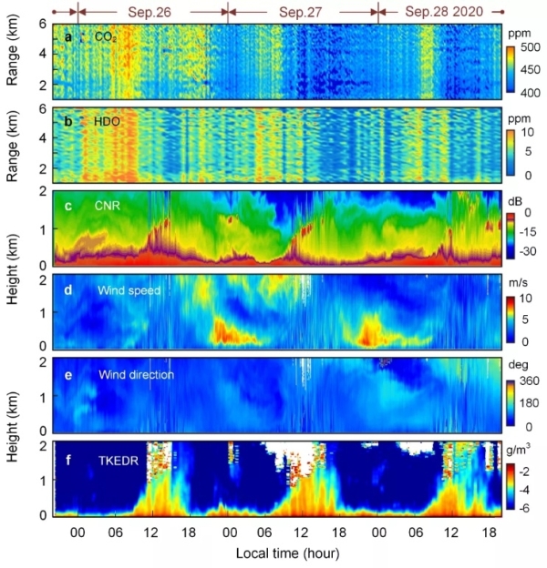 近日,中國科學技術大學激光雷達遙感團隊與中國航空工業(yè)集團公司第三〇四研究所飛秒激光精密測量團隊、中國科學院上海微系統(tǒng)與信息技術研究所超導單光子探測器團隊合作,發(fā)明了一種單光子探測自由空間區(qū)段光譜遙感技術,實現(xiàn)了自由大氣中二氧化碳(CO2)和半重水(HDO,其自然豐度約為H2O的1/3200)有距離分辨率的光譜遙感分析。該研究成果以Photon-counting Distributed Free-space Spectroscopy為題發(fā)表在Light : Science & Applications上。