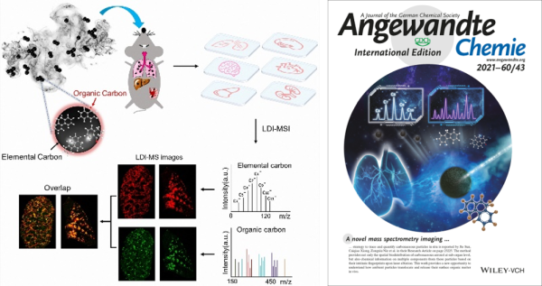 質(zhì)譜成像技術(shù)是近年來快速發(fā)展的分子成像技術(shù),廣泛應(yīng)用于蛋白質(zhì)、多肽、磷脂、氨基酸、寡糖等生物分子的成像。由生物質(zhì)或化石燃料的不完全燃燒產(chǎn)生的煙塵、黑碳和柴油發(fā)動機顆粒等碳質(zhì)氣溶膠,通常是PM2.5等復(fù)雜大氣顆粒物的重要組成部分,這些大氣顆粒物嚴(yán)重影響人類的健康。因此,追蹤真實的氣溶膠粒子多種成分的體內(nèi)行為十分重要,但由于其復(fù)雜性,現(xiàn)有方法尚無法實現(xiàn)。