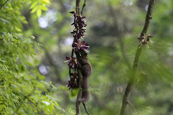 圖1.赤腹松鼠為油麻藤授粉(圖片來自四川都江堰青城山,陳立軍拍攝)