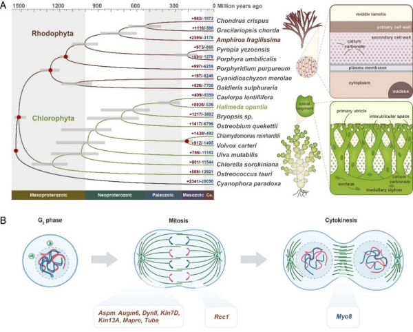 兩種鈣化藻類系統(tǒng)演化與仙掌藻核分裂圖示