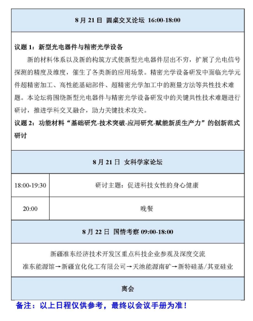 9.?參加圓桌論壇、國(guó)情考察、女科學(xué)家論壇等活動(dòng)的專家請(qǐng)及時(shí)關(guān)注會(huì)務(wù)通知,會(huì)務(wù)組會(huì)安排專人與您對(duì)接。